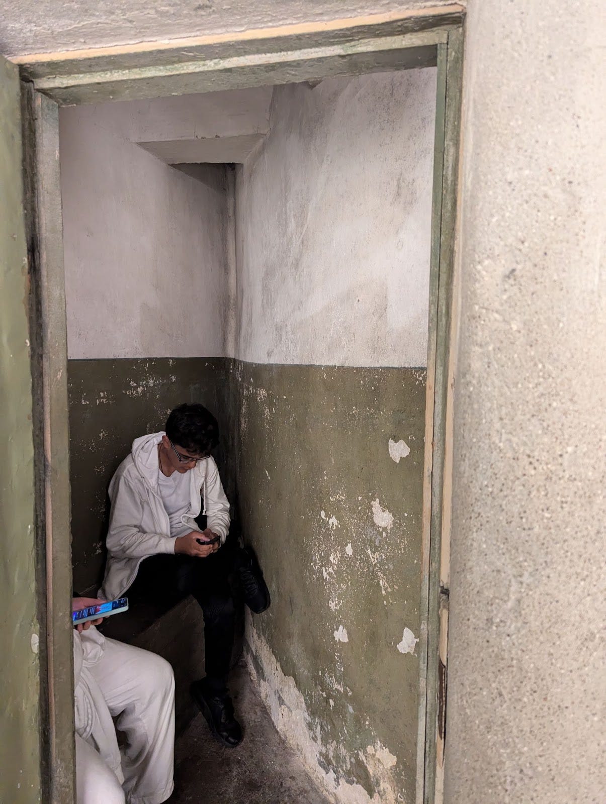 Below: teenagers texting from the solitary confinement cell of the KGB prison in Tallinn, Estonia. Love the absurdity.