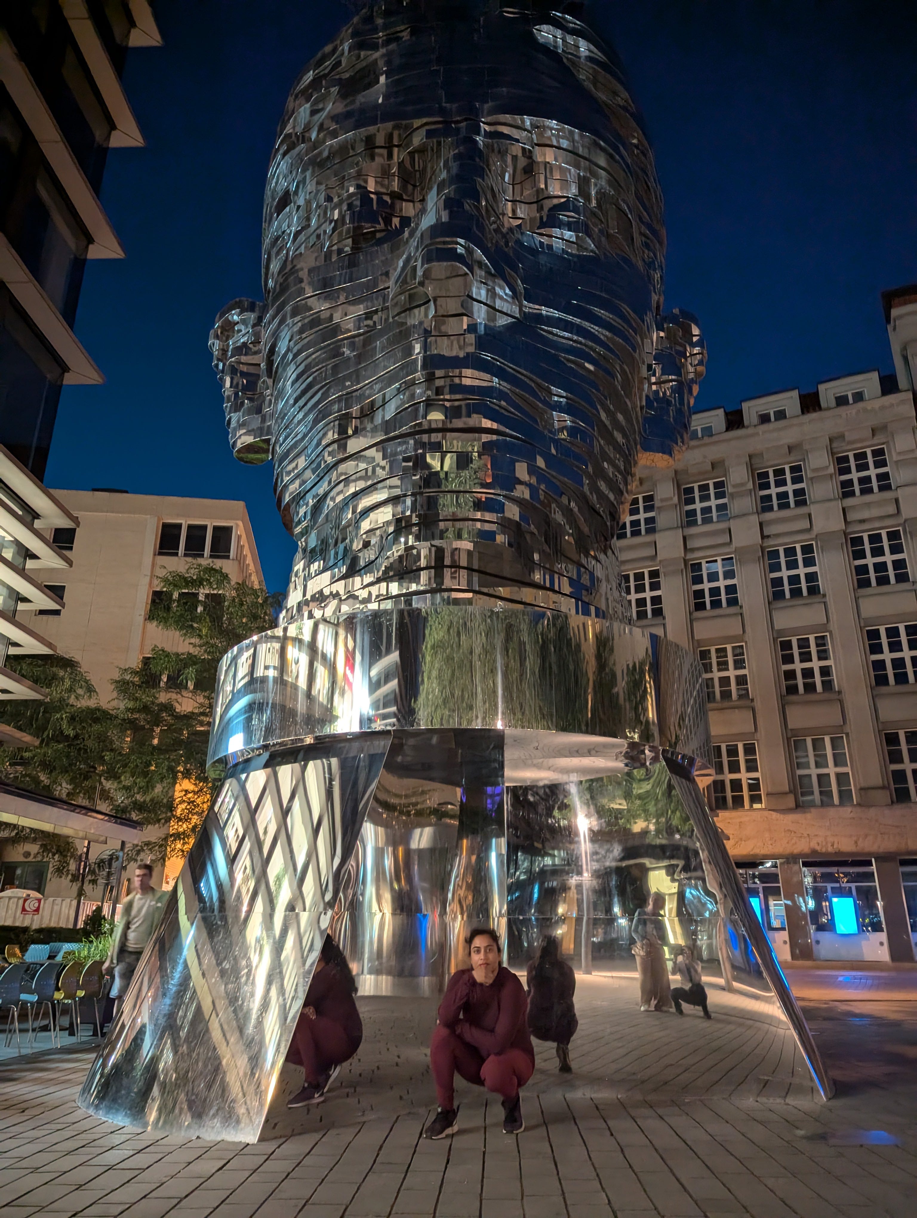 (Below: Giant rotating metallic head of Kafka in Prague. I can’t think of a more appropriate tribute. When I die, make mine gold).
